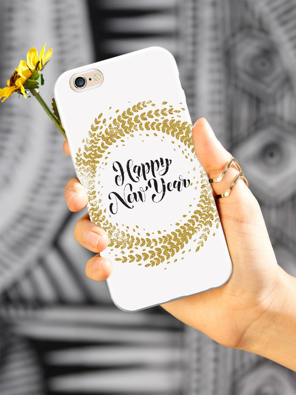 Give your device a unique style all its own. This Happy New Year - Gold Leaf Circle - White Case was professionally created and printed in the United States! Textured printing raises parts of the images, creating a unique feel like no other case.